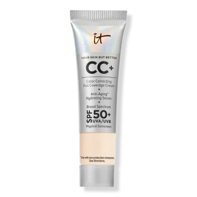 CC CREAM 12ML FAIR LIGHT. Benefits: The #1 SPF Foundation in America*, CC+ Cream provides all-in-one complexion perfection with a natural finish. The deepest shades are formulated with broad-spectrum clear SPF so there is no white cast left on skin after application. 98% said product instantly conceals the appearance of acne marks/scars**. 90% said product instantly conceals the appearance of dark spots**. 90% said product feels lightweight^. Up to 24-hour wear. 93% said product makes skin feel moisturized^. *Source: Circana/ U.S. Prestige Beauty Total Measured Market, Makeup Sales, SPF Attribute, 12 Months ending December 2023. **Based on consumer perception results with makeup on. ^Based on consumer perception results after one week of use. Features: Full-coverage foundation. Broad-spectrum SPF 50+. Instantly camouflages the look of top skin concerns, including:. Redness on skin. Acne scars/marks. Uneven skin tone. Dark spots. Key Ingredients: Hyaluronic Acid: Helps hydrate, visibly plump and minimize the look of fine lines & wrinkles. Vitamin E: Helps soothe and nourish skin. Niacinamide: Helps minimize the look of discoloration & promotes even-toned, radiant skin. SPF 50+: Provides broad-spectrum sun protection.