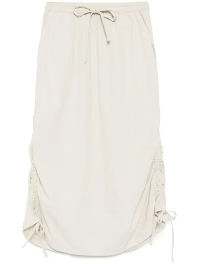 light grey elasticated drawstring waistband two side welt pockets curved hem