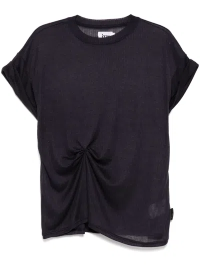 Marineblau runder Ausschnitt kurze, aufgerollte Ärmel