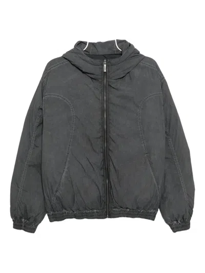 stone grey front zip fastening two side slit pockets slouchy hood ribbed cuffs and hem