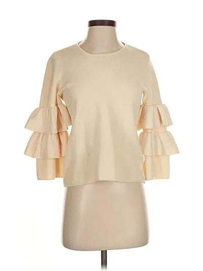J. McLaughlin Wool Pullover Sweater, Size: Small. Item Details: Tan, Ruffles Neckline, 3/4 Sleeve, Women's Sweaters & Sweatshirts, 100% Wool