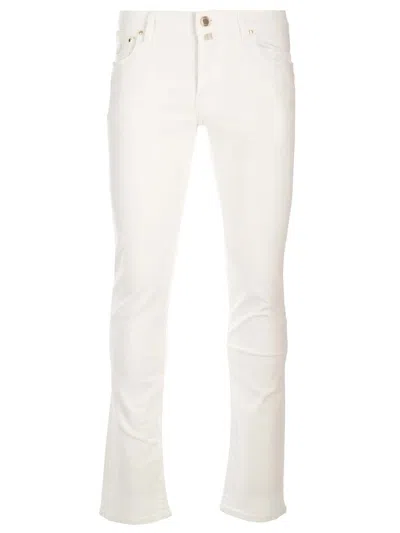 White denim slim fit "Nick" jeans by Jacob Cohen with five pockets and zip and button closure.. Colour. : White. Composition. : 93% COTTON 5% ELASTOMULTIESTE 2% SPANDEX - INLAY 65% POLYESTER 35% COTTON. Country Of Manufacture. : it. MPN. : UQE0730S3848A00A00. .