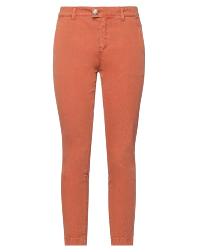 plain weave, basic solid color, logo, leather applications, mid rise, regular fit, tapered leg, button, zip, multipockets, contains non-textile parts of animal origin, cuffed hems , Color: Rust , Size: 27