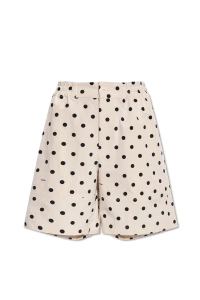 Introducing the Polka Dot Patterned Shorts by Jacquemus, an exquisite blend of elegance and casual sophistication. These beige shorts, adorned with a striking black polka dot motif, exude a sense of playful refinement. Tailored to a relaxed fit, they gracefully extend to mid-thigh, offering both style and comfort. Crafted from the finest 100% cotton, these shorts boast a lightweight and breathable fabric, ideal for sunlit escapades. The elastic waistband ensures a comfortable fit, while the addition of poc