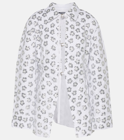 Shirt made of stretch viscose Pointed collar Front closure Long sleeves All-over sequin embroidery White, silver Made in India Composition: 96% viscose, 4% elastane Composition: 94% Coton, 6% Elasthanne