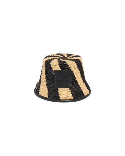 JACQUEMUS Le Bob Soli Striped Raffia Bucket Hat In Black