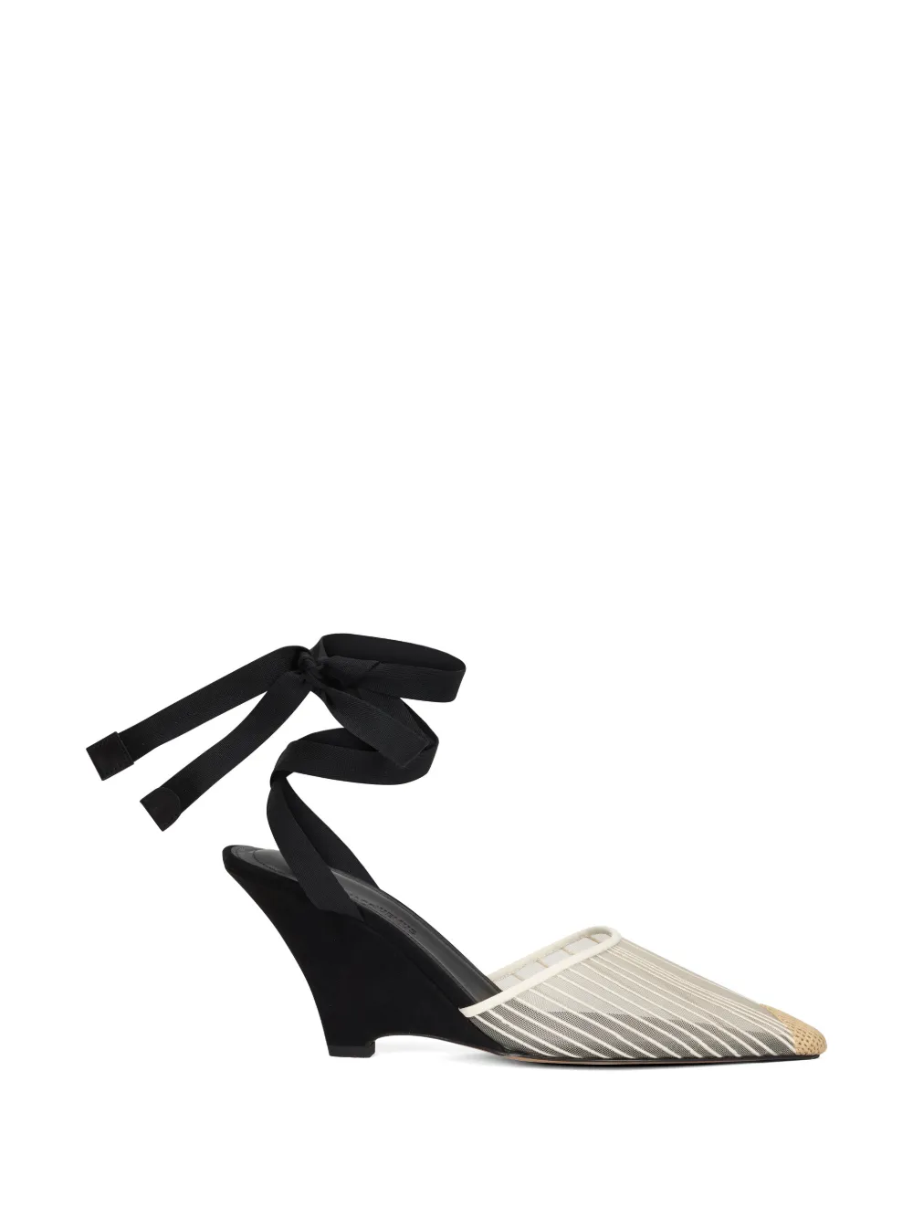 JACQUEMUS Les Espadrilles H in White - White,Black. Size 38 (also in 39). Mesh and microsuede upper with leather sole. Made in Italy. Ankle wrap tie closure. Cushioned leather footbed with leather lining. Embroidered mesh toe accent. Pointed toe. Wedge heel. Approx 75mm/ 3 inch wedge. JQUF-WZ131. 26EFOW00196AW00661. About the designer: At only 19 years of age, Parisian designer Simon Porte Jacquemus birthed his eponymous label to pay homage to his mother. Since then, the brand has been showcasing womenswear with a child-like spirit and a simplistic freedom. JACQUEMUS is confidently experimental yet refined with every asymmetrical, deconstructed, and oversized masterpiece.