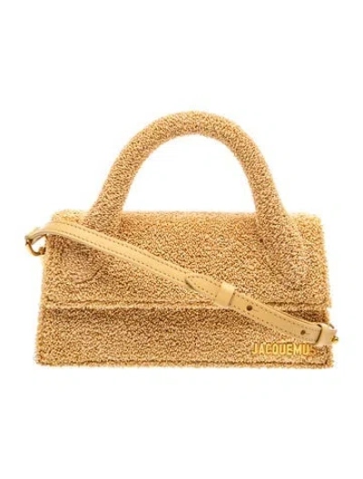 Jacquemus Top Handle Bag Neutrals Raffia Gold-Tone Hardware Rolled Handle & Single Adjustable Shoulder Strap Leather Trim Embellishment Canvas Lining & Single Interior Pocket Snap Closure at Front Includes Dust Bag | Jacquemus Raffia Top Handle Bag in Neutrals