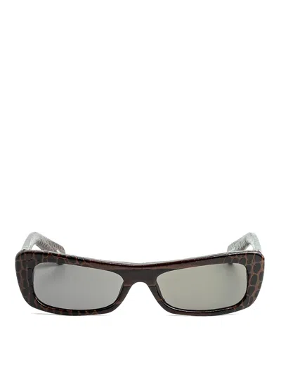 JACQUEMUS Rectangular Brown Frame Sunglasses With Textured Pattern In Gray