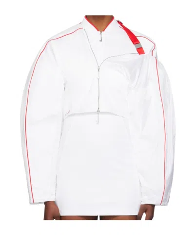 Two-way zipper closure, Swoosh and logo printed on side seams, short hem, strap straps, bubble sleeve piping, adjustable snaps on cuffs.