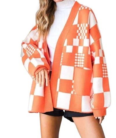 JADE BY JANE Checkered Color Block Open Midi Sweater With Pockets In Orange