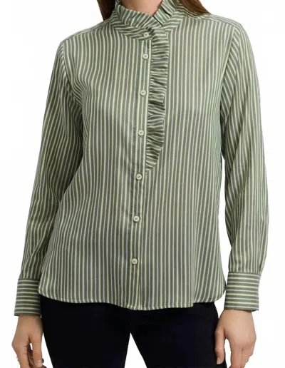 JADE Stripe Ruffle Button Down Blouse In Olive Stripe In Multi