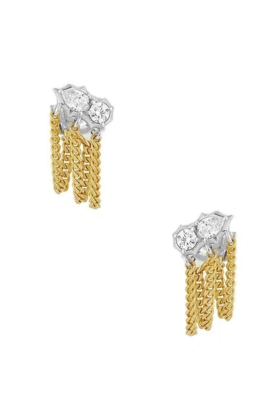 Jade Trau Posey Two Tone Chain Loop Earrings in 18k Gold & Platinum - Metallic Gold. Size all. 18k gold with 0.26c diamonds. Post-back closure. Measures approx 0.5 dangling. JTRF-WL10. JT3270EG-YG-PLAT. About the designer: