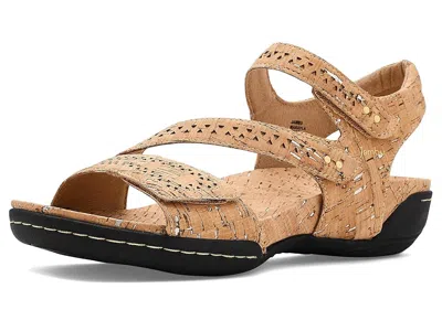 Jambu Makayla - Women's Shoes : Cork Shimmer : This product is certified vegan and is constructed with no animal parts for materials or bindings. ; Make your walk memorable by wearing the JBU Makayla sandals. Adorned with a strappy design and open-toe allure, these sandals boast a hook-and-loop closure for a secure fit. Lined with luxurious pigskin lining and featuring a stretch microsuede wrapped molded PU footbed, each step is pure bliss. ; Vegan tanned leather upper. ; TPR outsole. ; Imported. Measurements: ; Weight: 1 lb 4 oz ; Product measurements were taken using size 6, width M. Please note that measurements may vary by size. | Jambu Makayla Women's Shoes Cork Shimmer : 8 M