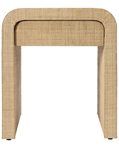 Part Of The Montecito Collection Color/Finish: Natural Design Details: Mid-Century Meets Southern California Coastal In This Casually Sophisticated Side Table. Tightly Wrapped In Natural Raffia, Its Slim Lines Conceal A Handy Drawer For Storage. The Accent Piece Is Perfect In Pairs As Bedside Options Or Next To An Overstuffed Armchair, And Was Designed To Be A Fit For Todayõs Easy Yet Elegant Homes. Expertly Crafted Of Mdf; Upholstered In Natural Raffia; 1 Push Open/Soft Close Drawer; Drawers Lined In Chambray Fabric; Protective End Caps; Made Of Dyed Natural Raffia, Finish Color May Vary Due To Natural Material; Top Dimension: 1.75H X 18W X 18D; Floor Clearance: 17; Leg Dimensions: 19.25H X 1.75W X 18D; Drawer Dimensions: 1.75H X 12.75W X 15D; Distance Between Legs (Side To Side): 14.5; Drawer Weight Capacity: 17 Lbs. Weight Capacity: 170 Lbs. Not Damp Rated. Measurements: 21In X 18In X 18In 1 Drawer(S) Raffia, Mdf We Do Not Recommend Using Harsh Or Abrasive Cleaners At Any Time As They Can Damage Product. Wipe Surfaces Gently With Soft, Dry Cloth. Indoor Use Only. Assembly Required Imported
