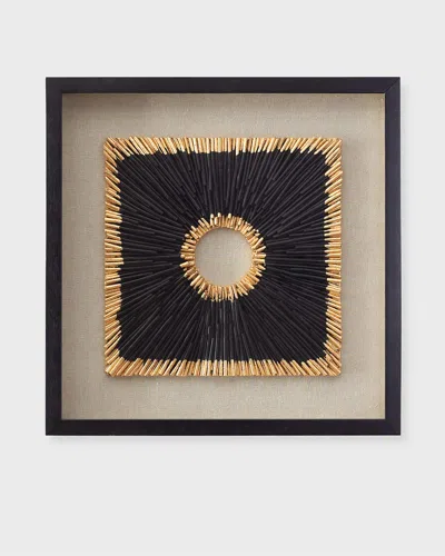This framed wall decor features painted dowels with handapplied gold leaf arranged on a textured background. Handcrafted of glass, polystyrene, and wood Overall, approx. 23"Sq. x 1.8"D Can hang horizontally or vertically Dring hanging hardware Wipe clean Weight, 12.0 lbs Imported Boxed weight, approximately 14.0 lbs