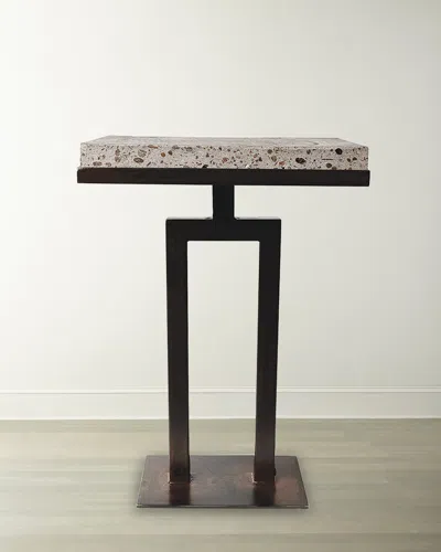 Handcrafted iron table with stone top. Approx. 17"W x 12"D x 24"T. Clean with soft, dry cloth. Made in Mexico. Boxed weight, approximately 65 lbs.