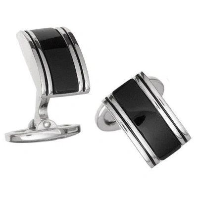 Linear Etch Rectangular Gemstone Sterling Silver Cufflinks In Black
