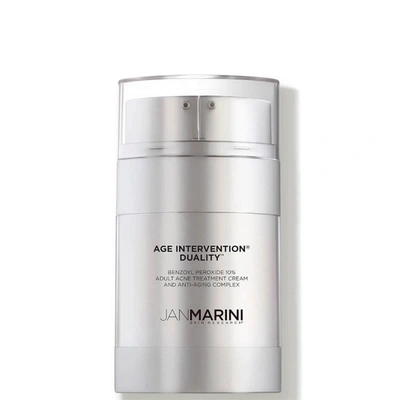 Description: This benzoyl peroxide cream addresses even the most stubborn adult acne while simultaneously minimizing the appearance of fine lines and wrinkles. Its unique dual chamber dispensing solution combines some of the most proven, yet previously incompatible, technologies in one product. The maximum allowed percentage of ultra-micronized benzoyl peroxide, highly concentrated all-trans-retinol, green tea extract, anti-aging peptides, advanced hydrators and antioxidants deliver unparalleled results in an easy to use solution. Be sure to also check out our Age Intervention® Gentle Cleanser, a mild formula designed for sensitive skin. Independent Study Results: A 3-month independent physician study using the Skin Care Management System™ and Duality MD™ on 21 subjects ages 20-29. Conducted by Jaggi Rao, MD Board Certified Dermatologist, FRCPC, Professor of Medicine, University of Alberta. Subject Assessment Results: 100% of subjects experienced a reduction in acne lesion counts. Improvement was statistically significant by week 4 and continued to improve through completion. 64% average lesion count reduction (range 36% to 78%). 100% of subjects experienced significant improvement in skin quality by blinded photographic review. High subject satisfaction with no reported irritation or excessive drying. Key Ingredients: All-Trans-Retinol Anti-Aging Peptides Chrysin Alpha-Bisabolol White Tea Extract NHS (N-Hydroxysuccinimide) Hyaluronic Acid