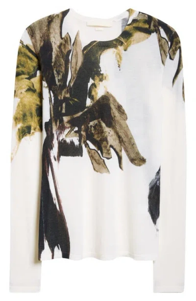 JASON WU COLLECTION Brushstroke Print Merino Wool Crewneck Sweater In Chalk/olive Multi