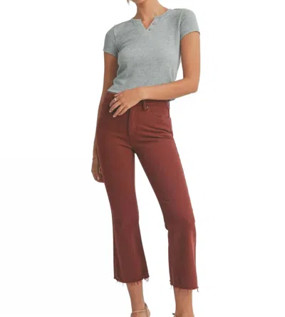 JBD High Rise Crop Flare With Distressed Hem In Ruby In Pink