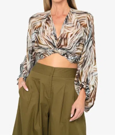 A versatile blouse that works from desk to dinner!Introducing the Adri Top by JBQ, a stylish addition to any wardrobe with its striking safari print and bouncy balloon sleeves. This blouse showcases a convertible front wrap design with a convenient tie closure and elastic cuffs. Crafted from 100% viscose, the cropped length ensures a chic, true-to-size fit. Perfect for any fashion-forward woman looking to make a statement with classic, versatile style.