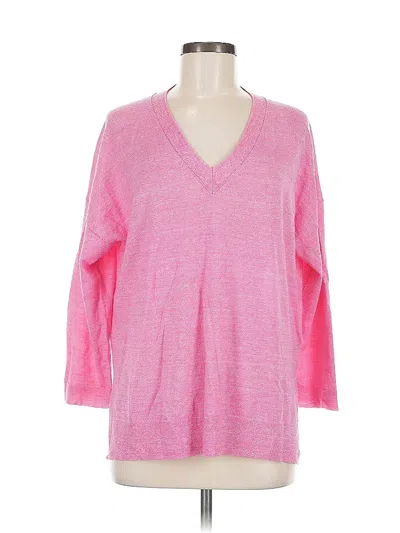 J.Crew Collection Wool Pullover Sweater, Size: Medium. Item Details: Pink, V Neck, 3/4 Sleeve, Women's Sweaters & Sweatshirts, Merino Wool/Linen