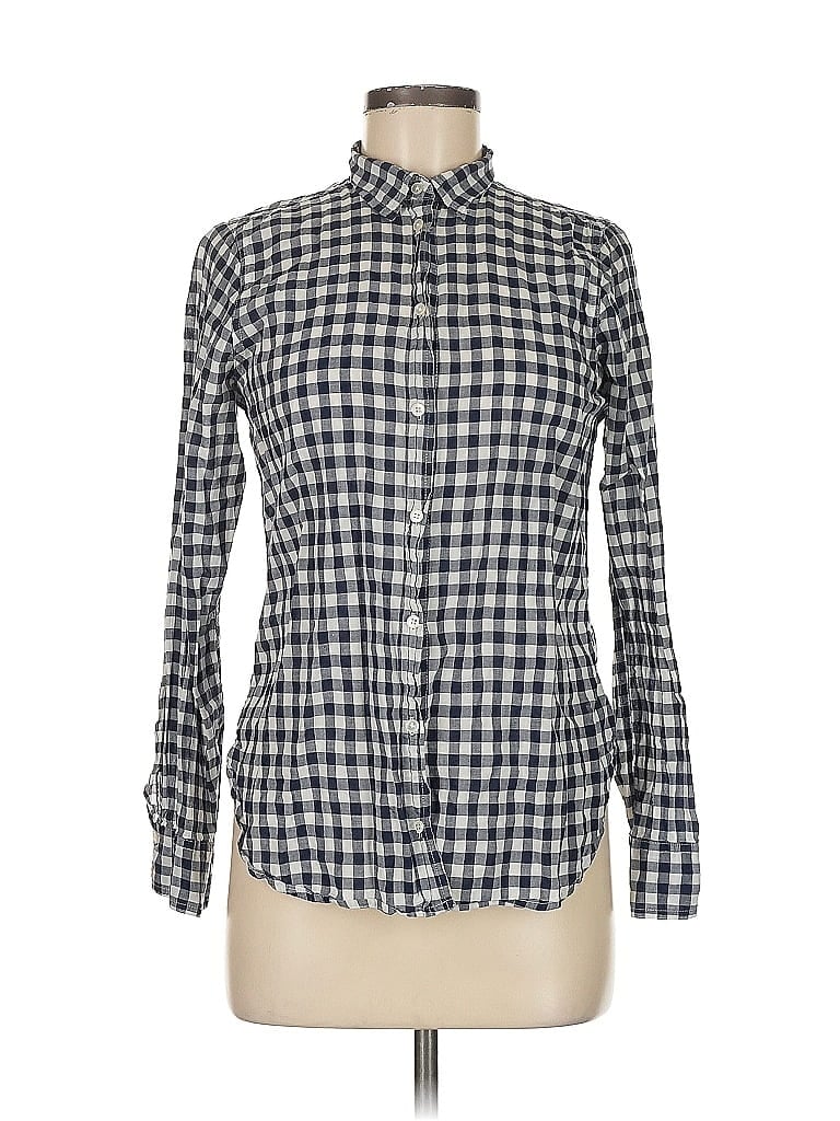 J.Crew Long Sleeve Button Down Shirt, Size: 6. Item Details: Blue, Checkered/Gingham Pattern, Mock Neckline, Long Sleeves, Flannel, Women's Tops, Cotton/Elastane