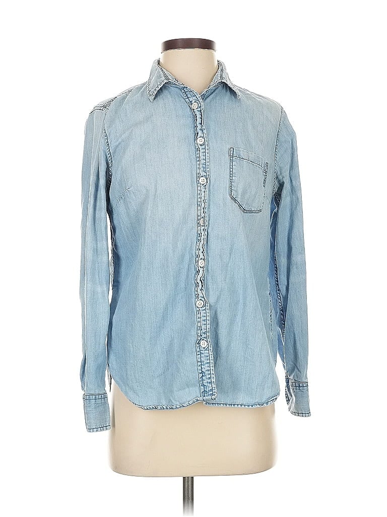 J.Crew Long Sleeve Button Down Shirt, Size: 4. Item Details: Blue, Collared Neckline, Frayed Edges, Women's Tops, 100% Cotton