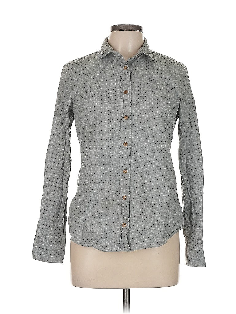 J.Crew Long Sleeve Button Down Shirt, Size: 10. Item Details: Gray, Polka Dots Pattern, Square Neckline, Women's Tops, 100% Cotton