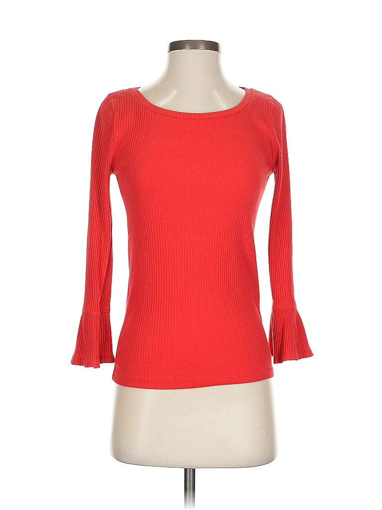 J.Crew Pullover Sweater, Size: X-Small. Item Details: Red, Ruffles Neckline, 3/4 Sleeve, Peplum, Women's Tops, Elastane/Polyester/Cotton