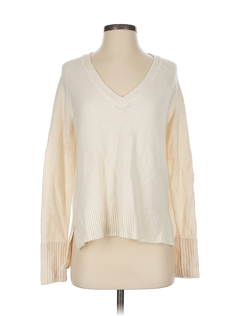 J.Crew Pullover Sweater, Size: X-Small. Item Details: Ivory, Plunge Neckline, Long Sleeve, Women's Tops, Nylon/Merino/Alpaca