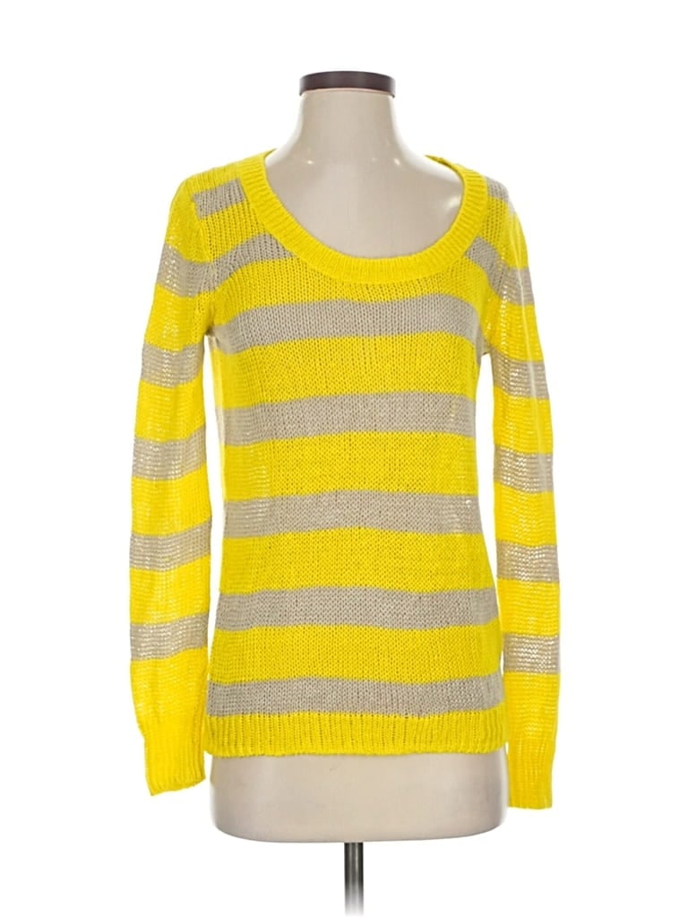 J.Crew Pullover Sweater, Size: X-Small. Item Details: Yellow, Stripes Pattern, Scoop Neck, Long Sleeve, Women's Tops, 100% Linen