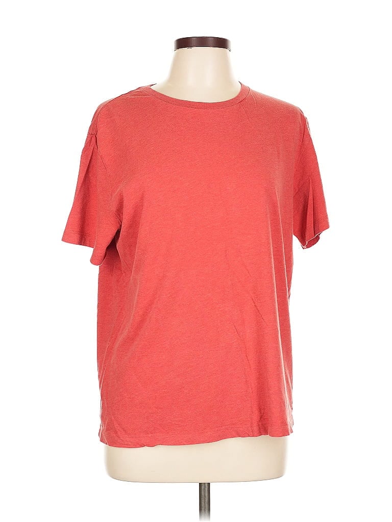 J.Crew Short Sleeve T Shirt, Size: Large. Item Details: Red, Boatneck, Short Sleeves, Frayed Edges, Women's Tops, 100% Cotton