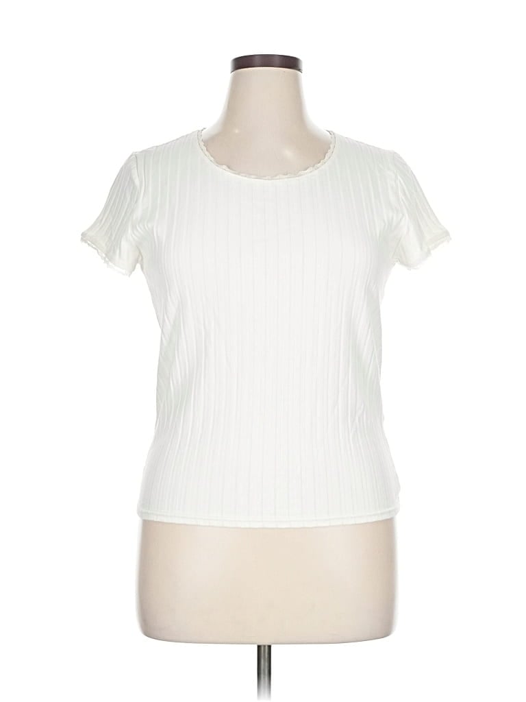 J.Crew Short Sleeve T Shirt, Size: X-Large. Item Details: Ivory, Ruffles Neckline, Women's Tops