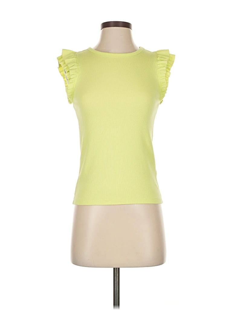 J.Crew Sleeveless T Shirt, Size: Small. Item Details: Green, Ruffles Neckline, Women's Tops, Cotton/Modal/Elastane