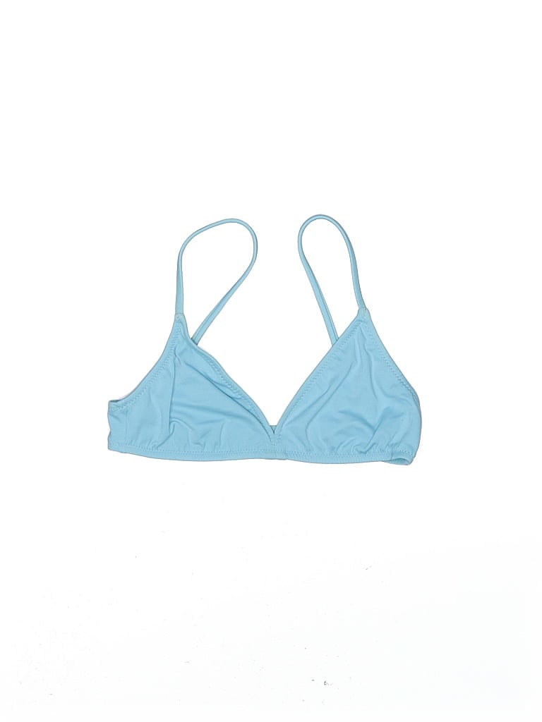 Pre-owned Swimsuit Top Blue Solid Pattern Swimwear
