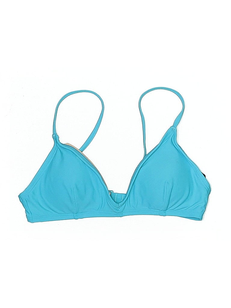 Pre-owned Swimsuit Top Blue Solid Pattern Swimwear