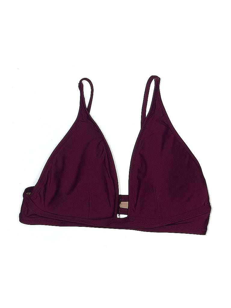 Pre-owned Swimsuit Top Burgundy Solid Pattern Swimwear