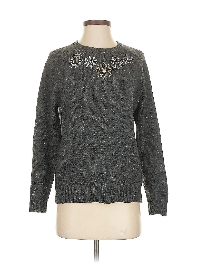 J.Crew Wool Pullover Sweater, Size: Small. Item Details: Gray, Tweed Pattern, Keyhole Neckline, Long Sleeve, Beaded, Women's Sweaters & Sweatshirts, Lambswool/Nylon