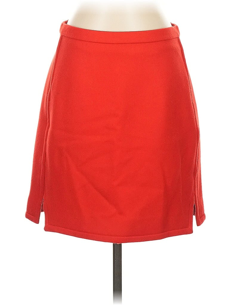 J.Crew Wool Skirt, Size: 4. Item Details: Red, Solid Pattern, Knee Length, Sheath, Women's Bottoms, 100% Wool