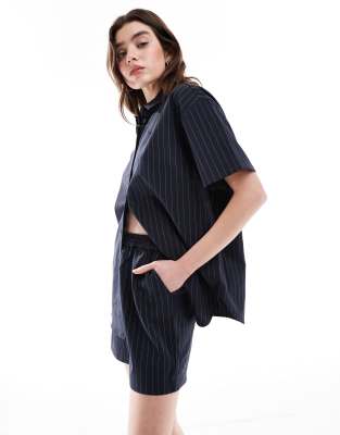 Oversized Pinstripe Short In Navy - Part Of A Set