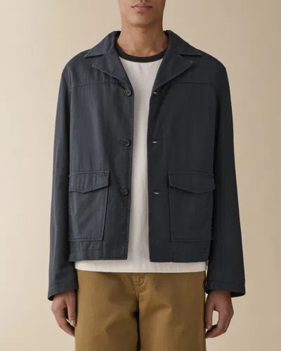 'Chet' is an overshirt jacket crafted with a boxy silhouette for a contemporary look. The design features practical front patch pockets, elegant horn buttons, and distinctive collar and yoke details that add refined character. This versatile piece effortlessly bridges the gap between casual shirt and lightweight jacket, perfect for layering throughout the season.