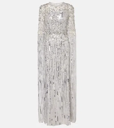 JENNY PACKHAM Ruby Caped Sequined Gown In Silver