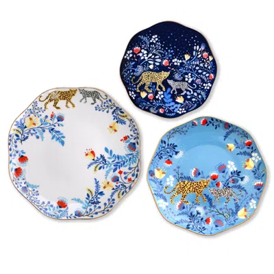 JESSIE ZHAO NEW YORK Amazon Rainforest Bone China Plates In Blue, Set Of Three