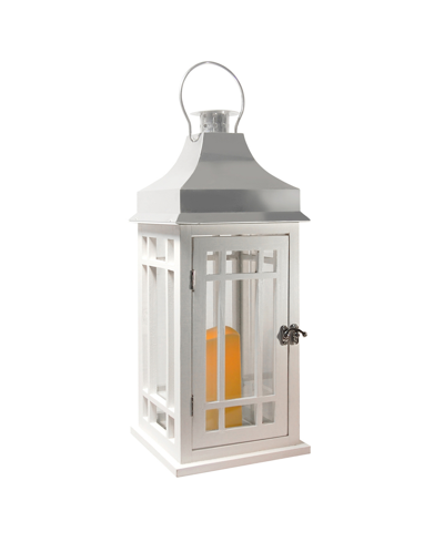 Lumabase White Wooden Lantern with Chrome Roof and Led Candle Other Home Accents - Candle Holders