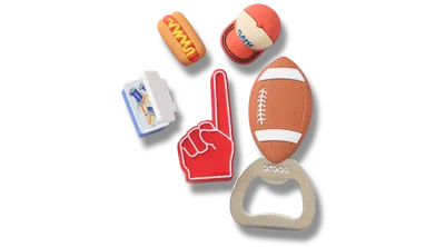 Pop some personality into your shoes with these Tailgate 5 Pack Jibbitz™ charms. They’re the perfect addition to your favorite pairs of clogs, slides, and more.Not a toy. Not intended for children under 3 years of age.