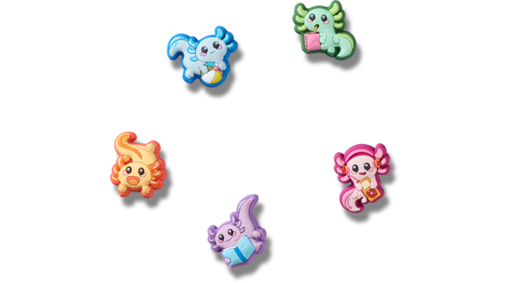 Pop some personality into your shoes with these Tiny Axolotls 5 Pack Jibbitz™ charms. They’re the perfect addition to your favorite pairs of clogs, slides, and more.Not a toy. Not intended for children under 3 years of age.