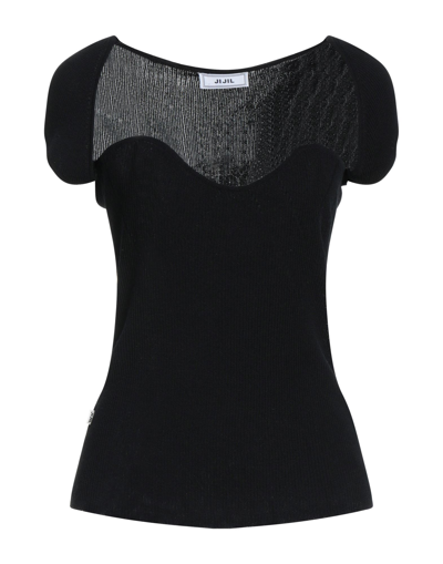JIJIL Sweaters. knitted, lightweight knit, no appliqués, solid color, deep neckline, short sleeves, no pockets. 86% Viscose, 14% Polyamide