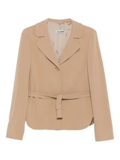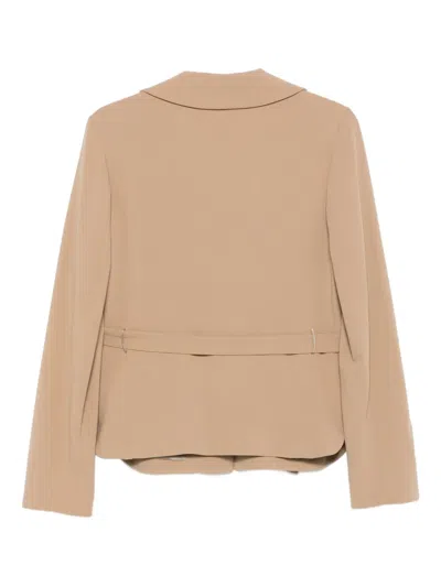 Pre-owned 2000s Belted Wool-blend Jacket In Neutral